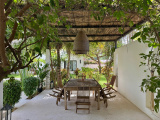 Un vaste salon-séjour au mobilier raffiné, ouvert sur la terrasse et le jardin.
